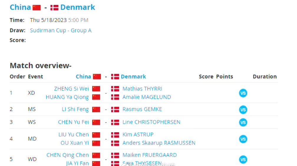 2019苏迪曼杯世界羽毛球混合团体锦标赛,中国队总比分3比1击败丹麦队中丹之战,混双由世界排名第一的中国组合郑思维黄雅琼对阵克里斯蒂安森蒂格森首局,发挥出色的丹...
